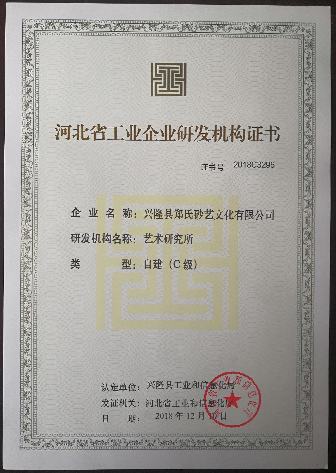 獲得由興隆縣工業(yè)和信息化局認(rèn)定,