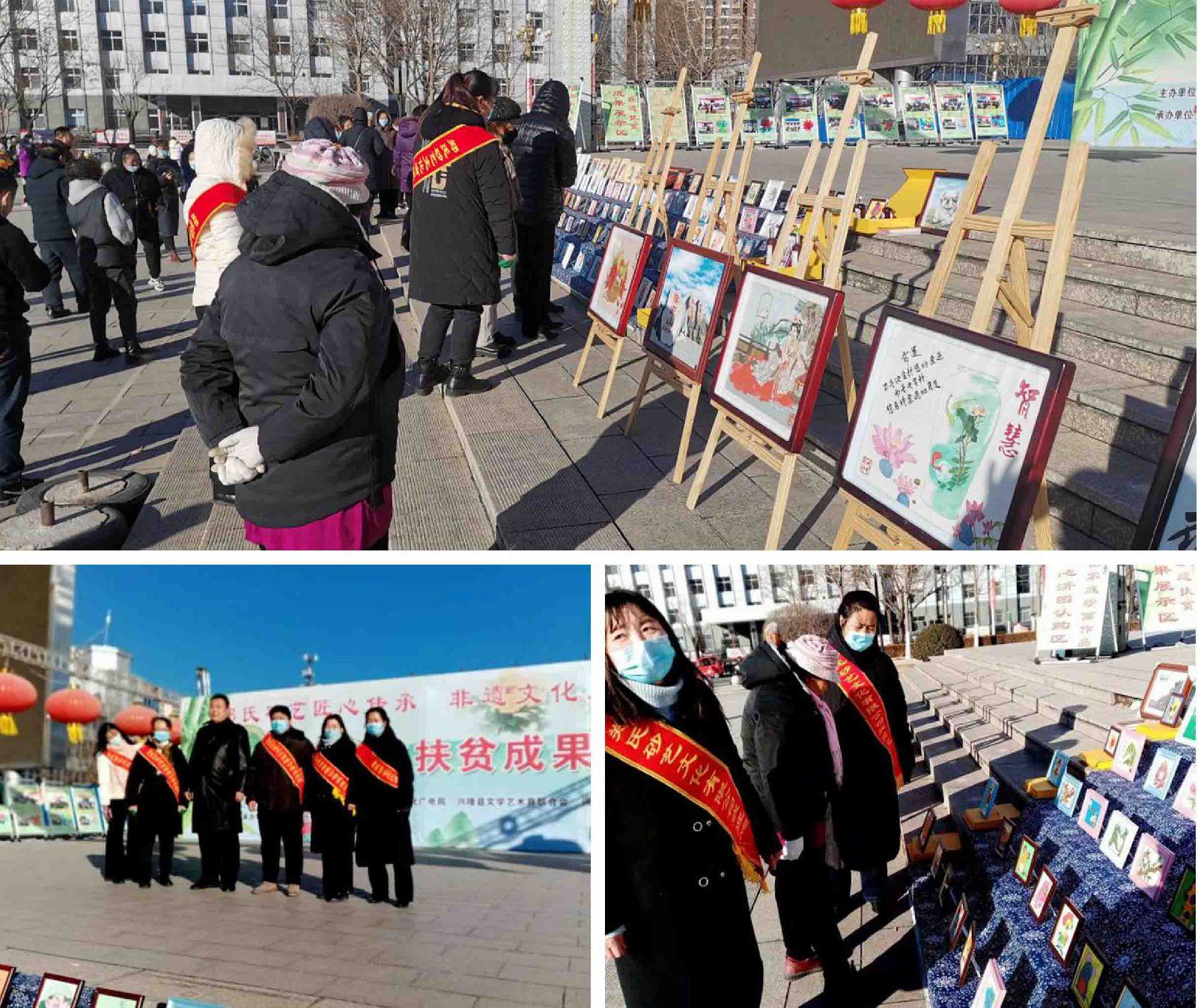 2020年11月27日。由中共興隆縣委宣傳部、興隆縣旅游和文化廣電局、興隆縣文學(xué)藝術(shù)界聯(lián)合會、興隆縣扶貧開發(fā)辦公室主辦的、由興隆縣鄭氏砂藝文化有限公司承辦的《非遺文化扶貧成果展》在興隆縣中心廣場拉開帷幕。展會由興隆縣文學(xué)藝術(shù)界聯(lián)合會主席王久俠主持,鄭氏砂藝文化 有限公司董事長鄭鐵軍致開幕詞。文聯(lián)主席王久俠作重要講話。她說:“鄭氏砂藝是祖?zhèn)骷妓?,幾年來鄭氏砂藝積極開展非遺文化扶貧,培訓(xùn)全縣400余名貧困婦女,制作出了具有飽含鄉(xiāng)土氣息,美輪美奐的砂藝作品。讓他們用巧手脫貧致富,為脫貧攻堅作出顯著貢獻?!彪S后縣委宣傳部常務(wù)副部長隋云鵬、縣旅游和文化廣電局黨委書記閆海濤、文聯(lián)主席王久俠由砂藝公司董事長鄭鐵軍、公司工會主席趙文紅等引導(dǎo)下,觀摩了“扶貧培訓(xùn)成果展區(qū)”、“消費扶貧展區(qū)”、“貧困戶作品展區(qū)”及“愛心認購展區(qū)”。四區(qū)展介及作品。對鄭氏砂藝非遺文化扶貧成果給予充分肯定,并興致勃勃地欣賞了鄭氏砂藝美輪美奐的貧困戶作品。