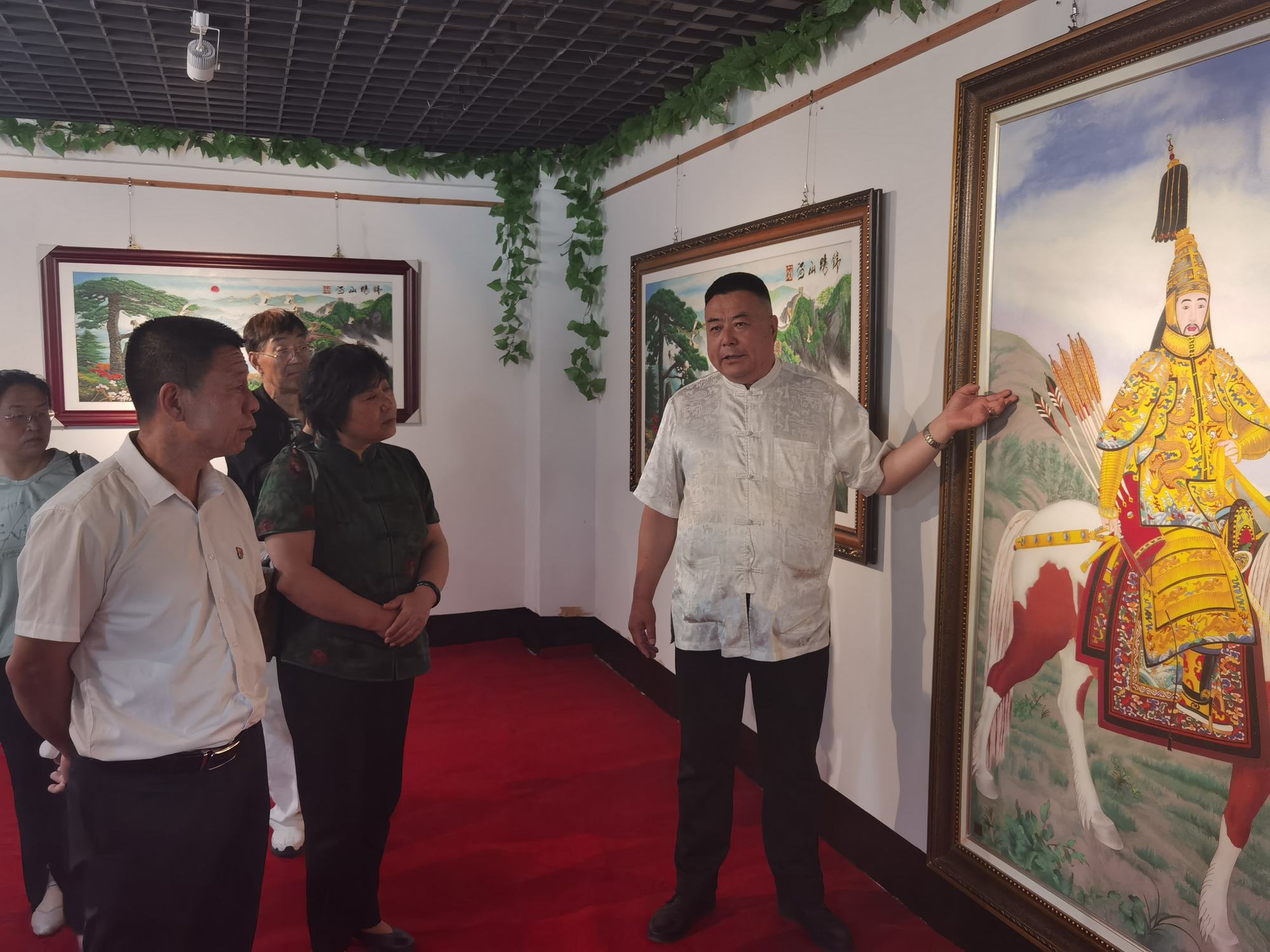 上午9時許,石俊鳳主席一行在鄭鐵軍主席的陪同下,參觀了鄭氏砂藝(畫)非遺博物館。博物館展出了鄭氏砂藝多年來在傳承和發(fā)展中的非遺砂畫精品3000余幅,這些作品能清晰地反映出鄭氏砂藝在不同時期的技術(shù)特點(diǎn),同時也展現(xiàn)了鄭氏砂藝在非遺技藝和材料運(yùn)用的不斷提升。參觀過程中,鄭鐵軍主席如數(shù)家珍般地向大家介紹了館內(nèi)藏品,這些作品有的被各大博物館收藏,有的被其他國家作為國禮收藏,有的獲得了國家級獎項(xiàng)等等。參觀結(jié)束后,石俊鳳主席表示:“鄭氏砂藝這些年的發(fā)展是有目共睹的,是承德市文化企業(yè)中發(fā)展較快、規(guī)模較大的,鄭氏砂藝的發(fā)展經(jīng)驗(yàn)是值得我們學(xué)習(xí)和借鑒的,祝愿鄭氏砂藝在今后的發(fā)展中更上一層樓。同時鄭氏砂藝(畫)技藝是一項(xiàng)技術(shù)要求較高且畫面精美的非遺藝術(shù),非常值得大家學(xué)習(xí)和交流,增加大家對鄭氏砂藝非遺文化的了解”。