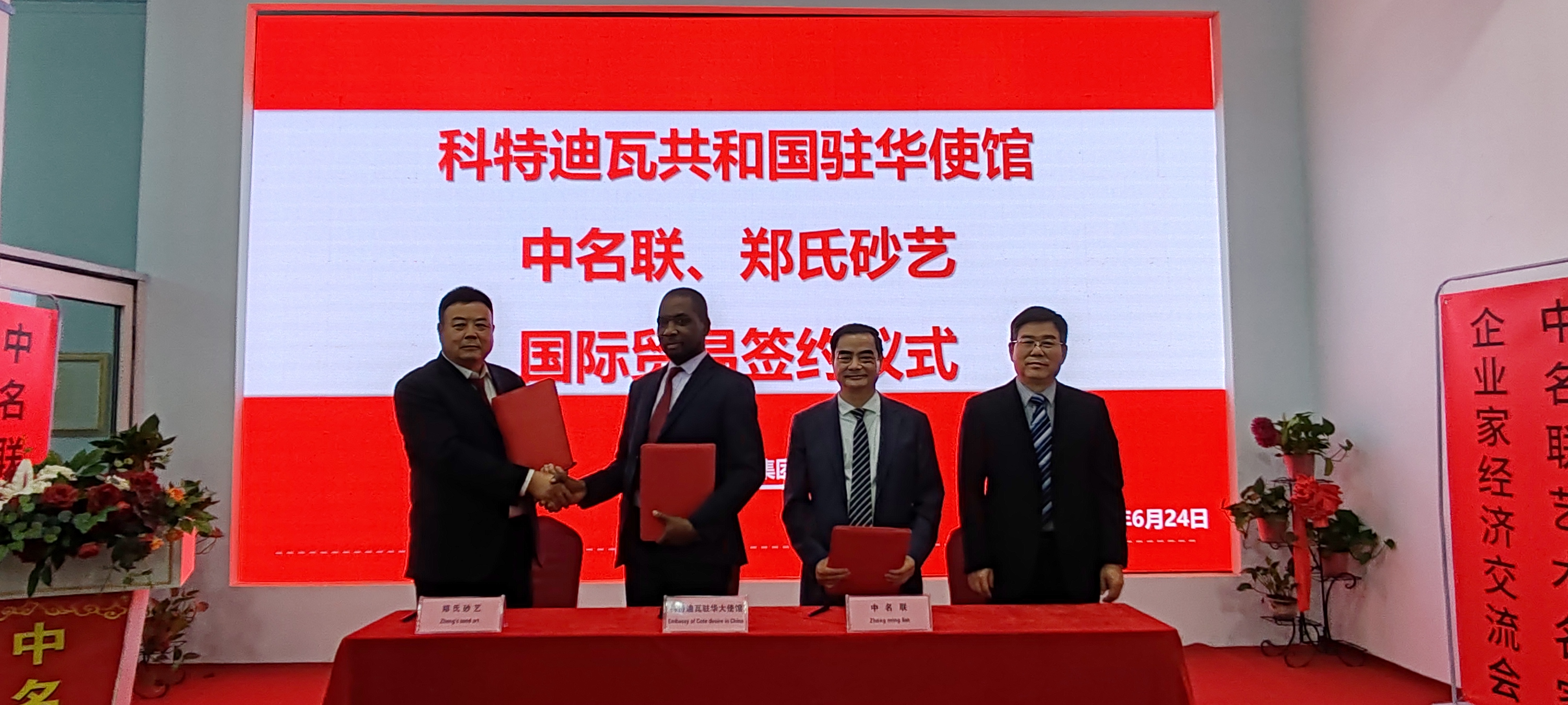 2024年6月24日,科特迪瓦共和國駐華使館、中名聯(lián)、鄭氏砂藝國際貿(mào)易簽約儀式在中名聯(lián)國際議會大廳成功舉辦,參加簽約儀式的有科特迪瓦共和國駐華使館參贊、中名聯(lián)集團(tuán)董事長戴本領(lǐng)、鄭氏砂藝董事長鄭鐵軍、邯鄲市華冶工貿(mào)有限公司黨委書記董事長張書明和眾多中名聯(lián)簽約國禮藝術(shù)家和企業(yè)家們。