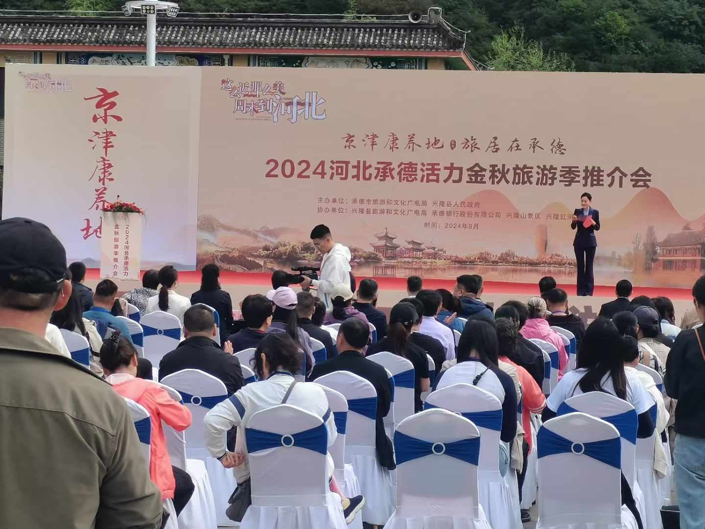 2024年9月25日上午,由承德市旅游和文化廣電局、興隆縣人民政府主辦的“京津康養(yǎng)地 旅居在承德”2024活力金秋旅游季推介活動,在興隆縣興隆山景區(qū)山門廣場隆重開幕,此次活動意在叫響承德秋季旅游品牌,推動承德市旅游業(yè)高質量發(fā)展?;顒友埩司┙蚣竭|蒙的大型旅行社代表,友鄰城市文旅部門領導,國家、省、市主流媒體和自媒體,承德市委、市政府領導,市農(nóng)業(yè)農(nóng)村局、市體育局、市文物局、市文聯(lián)、市總工會、避暑山莊旅游集團、市供銷集團相關負責同志,各縣(市、區(qū))政府分管負責同志、旅游和文化部門主要負責同志,重點文旅企業(yè)、市攝影家協(xié)會、河北省自駕游與露營房車協(xié)會承德分會等多家單位。