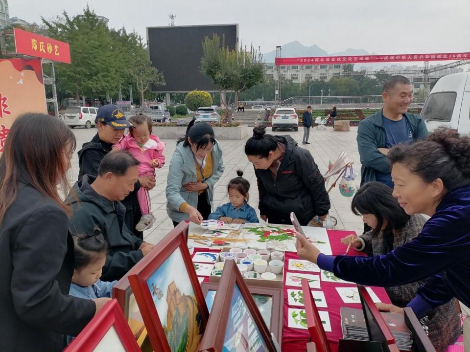 在展覽現(xiàn)場,鄭氏砂藝展區(qū)人頭攢動(dòng),熱鬧非凡。一系列精心創(chuàng)作的砂藝藝術(shù)品,如《國泰民安》《沿著社會(huì)主義大道奔前方》《興隆山》《霧靈山》《天文臺(tái)》及《紅紅火火》等,吸引了眾多觀眾的目光。這些作品不僅展現(xiàn)了鄭氏砂藝精湛的制作工藝和獨(dú)特的藝術(shù)風(fēng)格,更蘊(yùn)含了對(duì)祖國繁榮昌盛、人民幸福安康的美好祝愿。鄭氏砂藝的展品憑借其獨(dú)特的藝術(shù)魅力和深刻的主題內(nèi)涵,贏得了廣大父老鄉(xiāng)親的喜愛和贊賞。觀眾們紛紛駐足觀賞,拍照留念,更有不少人表示被這些作品深深打動(dòng),感受到了濃厚的愛國情懷和藝術(shù)氛圍。