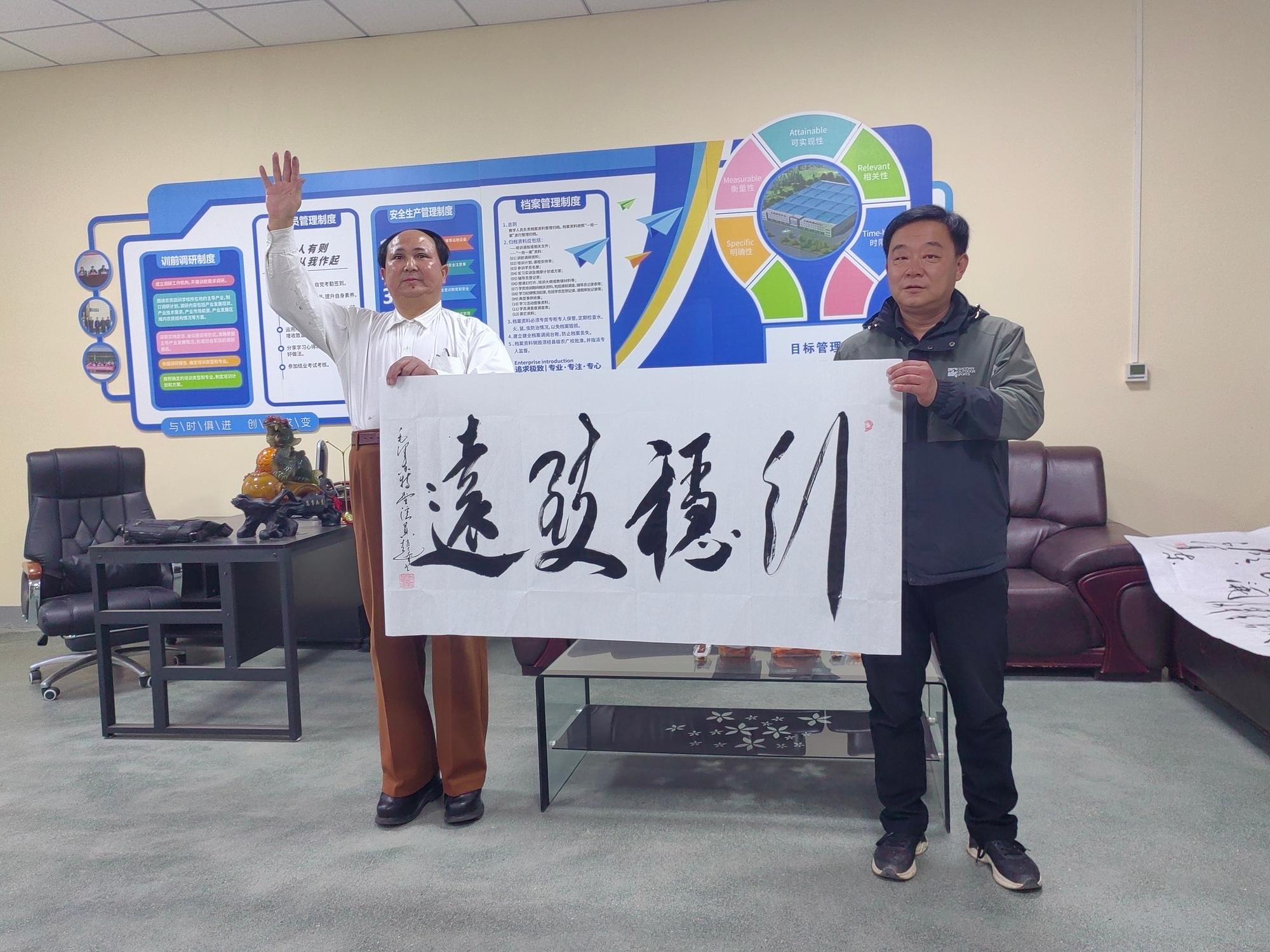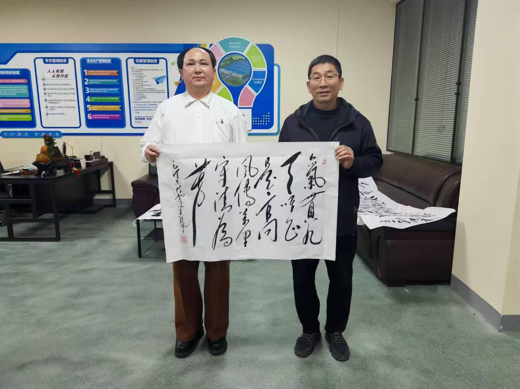 參觀結(jié)束后,趙士奎老師現(xiàn)場題寫了多幅書法作品贈予樺維公司。隨后,趙老師與現(xiàn)場員工進(jìn)行了互動環(huán)節(jié),他生動形象地再現(xiàn)了偉人的風(fēng)范,并深刻宣講了偉人思想的崇高精神。趙老師期望這次傳統(tǒng)文化交流活動能夠融入企業(yè)文化建設(shè)之中,能夠成為樺維企業(yè)文化建設(shè)的一部分,激勵員工在工作中不斷追求卓越,同時(shí)也為企業(yè)的整體環(huán)境增添文化氛圍。