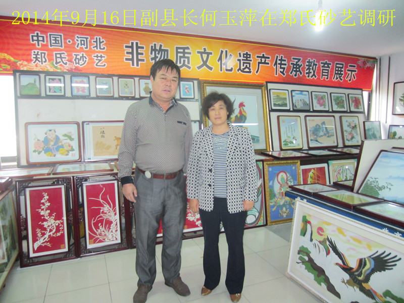 2014年9月16日,副縣長(zhǎng)何玉萍來(lái)到鄭氏砂藝公司就我縣文化產(chǎn)業(yè)發(fā)展進(jìn)行考察調(diào)研。何縣長(zhǎng)參觀了鄭氏砂藝研發(fā)室、展廳和公司企業(yè)文化墻,聽(tīng)取了公司總經(jīng)理鄭鐵軍的工作匯報(bào)。何縣長(zhǎng)對(duì)鄭氏砂藝近幾年來(lái)所取得的成績(jī)給予充分肯定,并希望鄭氏砂藝一定要瞄準(zhǔn)國(guó)內(nèi)外兩個(gè)市場(chǎng),抓住生產(chǎn)研發(fā)與市場(chǎng)銷(xiāo)售兩個(gè)主要環(huán)節(jié),搞好科技創(chuàng)新,千方百計(jì)提升產(chǎn)品質(zhì)量,帶動(dòng)我縣文化產(chǎn)業(yè)的繁榮發(fā)展。