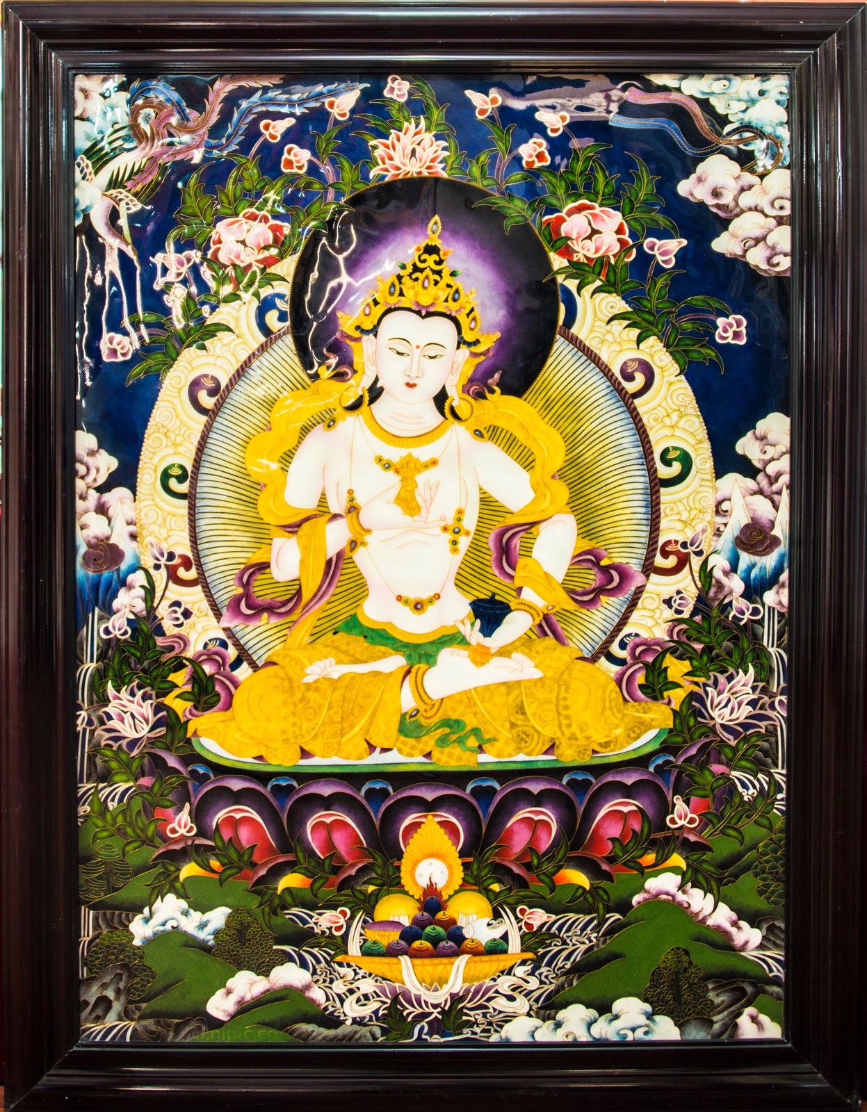 鄭氏砂畫由晚清時代的鄭克祥始創(chuàng),距今已有160多年的歷史。制作取材皆低碳環(huán)保,以精選的天然彩砂和優(yōu)質的金銀絲為主要原料,工藝上借鑒了景泰藍的掐絲、點藍等手法,畫面鮮艷靚麗、光澤剔透,主題鮮明,且永不褪色,具有欣賞收藏雙重價值。